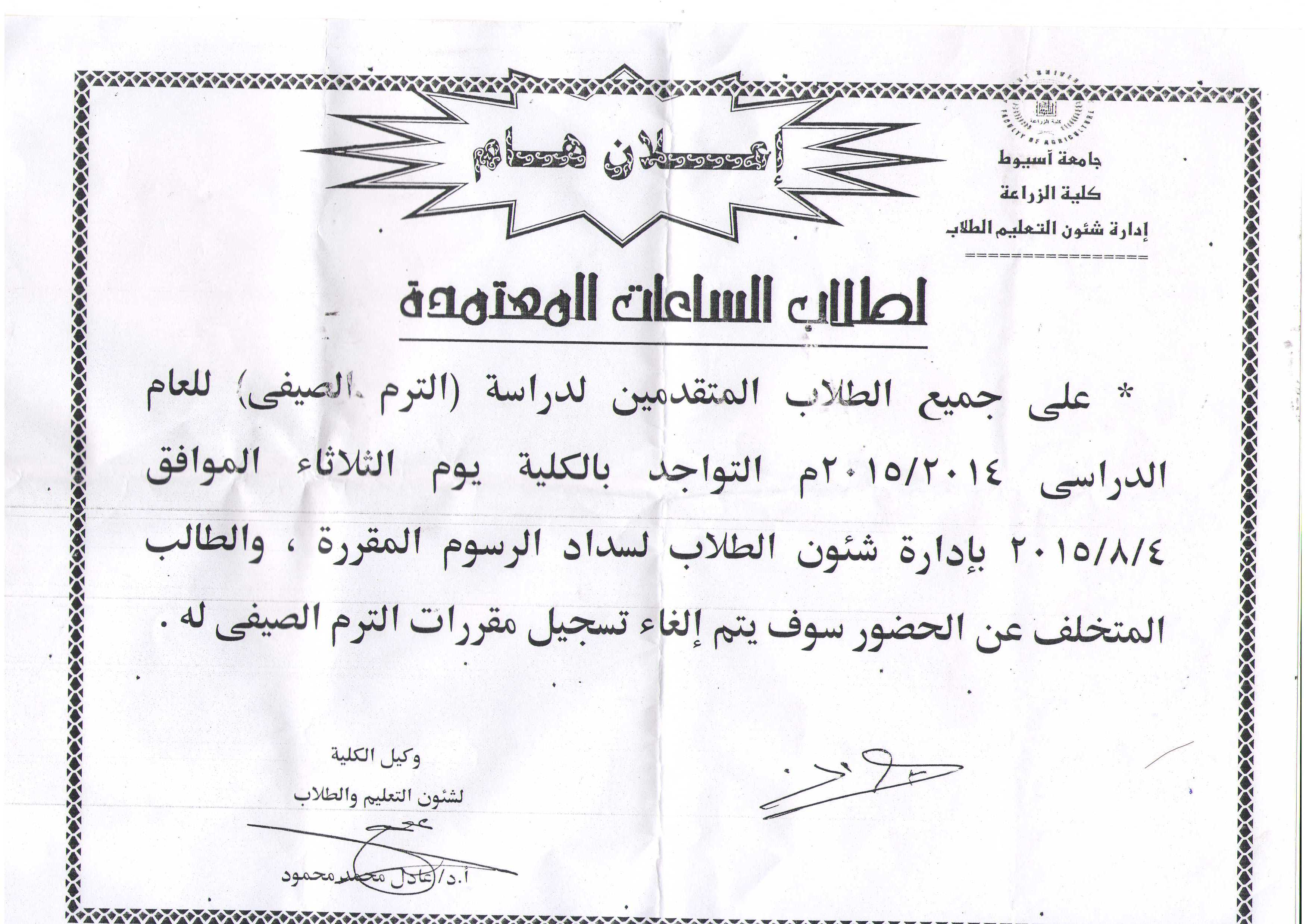 اعلان هام لطلاب الساعات المعتمدة 2015