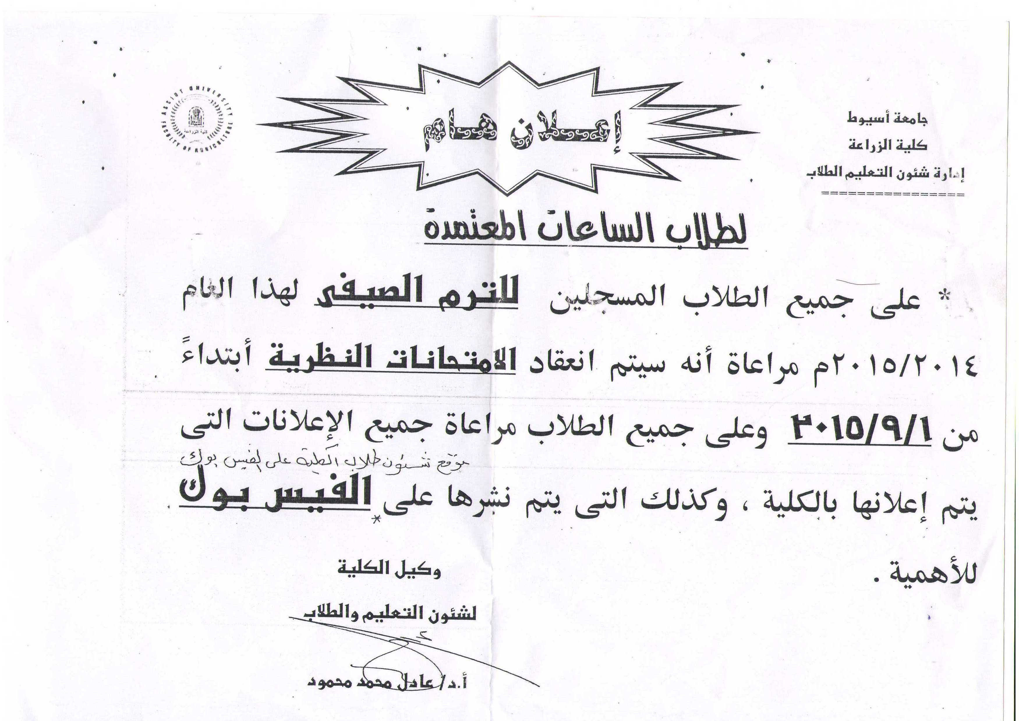 اعلان لطلاب الساعات المعتمدة