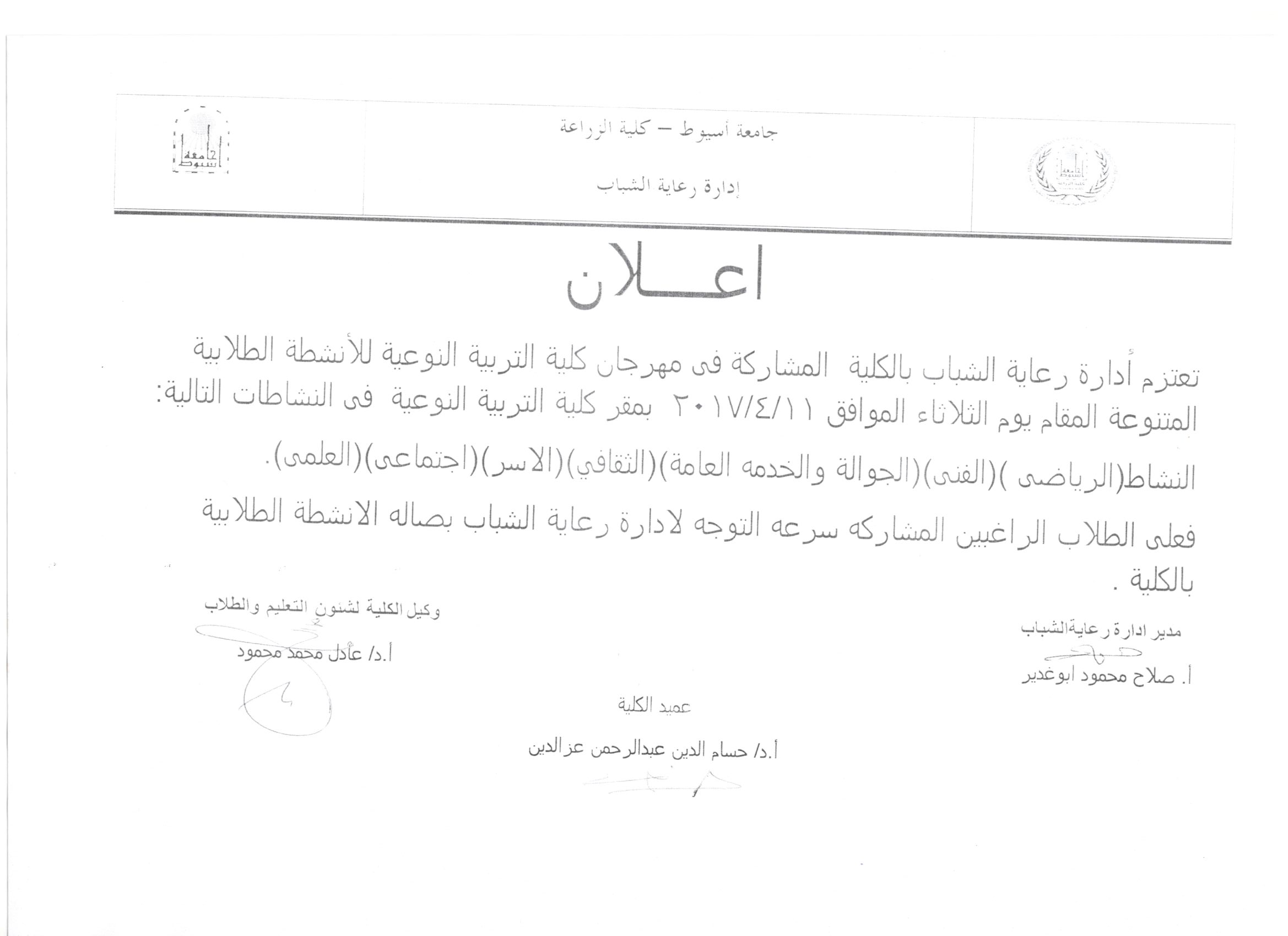 اختيار كلية الزراعة بجامعة أسيوط