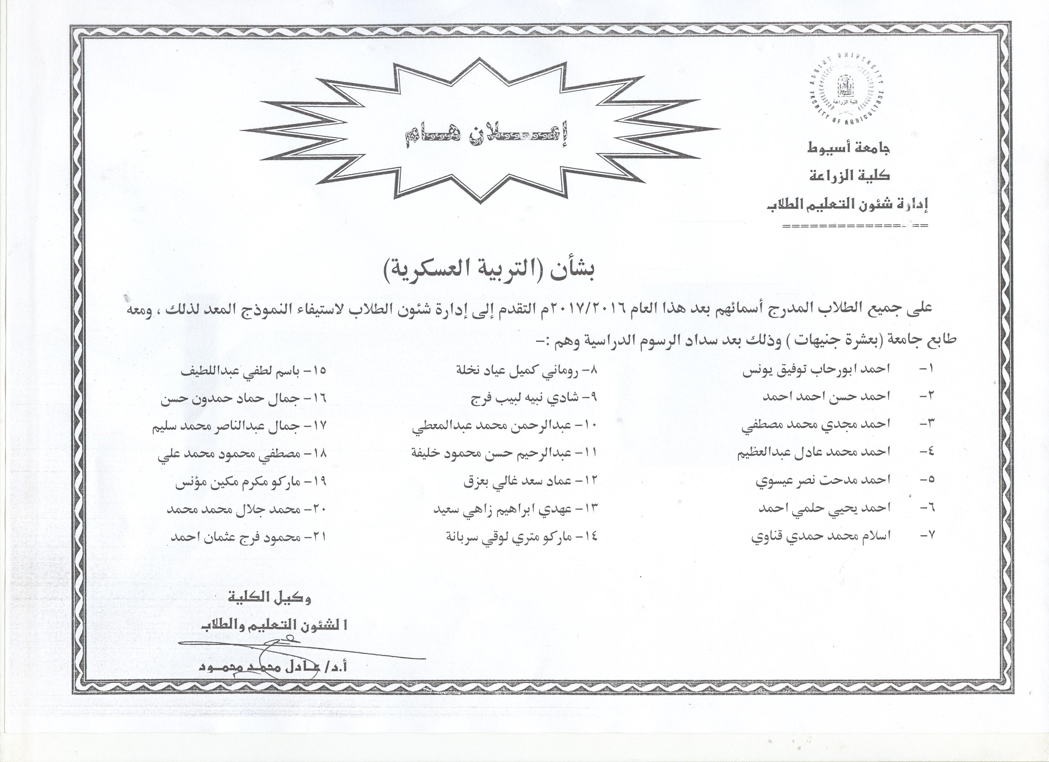 اختيار كلية الزراعة بجامعة أسيوط