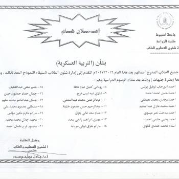 سوف يعقد بمشيئة الله تعالي اجتماع لجنة شئون التعليم والطلاب بكلية الزراعة يوم الاربعاء الموافق 16/ 11 / 2016 م الساعة الحادية عشر صباحاُ بمكتب السيد الأستاذ الدكتور/ وكيل…
