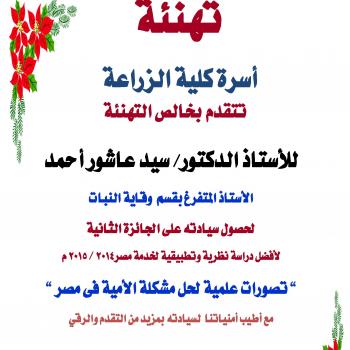 فاز الباحث الدكتور سيد عاشور الأستاذ بكلية الزراعة بجامعة أسيوط بالجائزة الثانية في مسابقة وقف المستشار محمد شوقي…