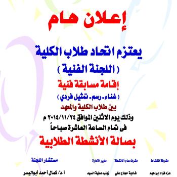 تعلن ادارة الدراسات اعليا عن فتح باب التقدم للتسجيل للدراسات العليا للفصل الدراسي الثانى للعام الجامعى 2014/2015 على ان يبدء تقديم الاوراق خلال الفترة 1/12/2014 حتى 31/12/2014