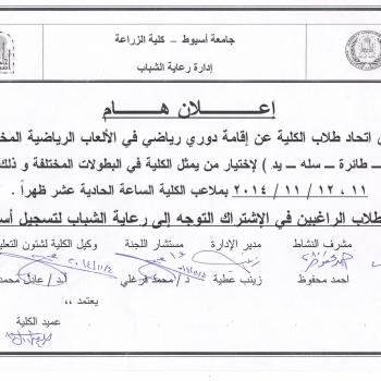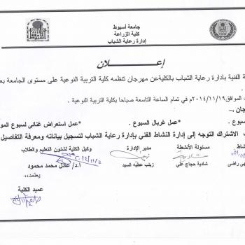 تعقد جامعة أسيوط يوم الاثنين المقبل 10/11/2014 ندوة علمية بعنوان "…