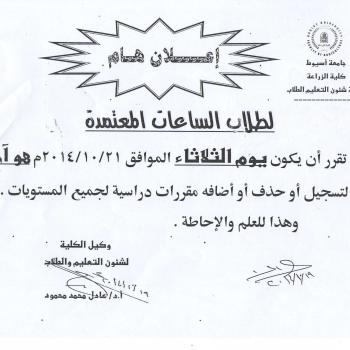 وذلك اعتباراً من الأحد القادم 21/10/2014 بمبنى معمل اللغة…