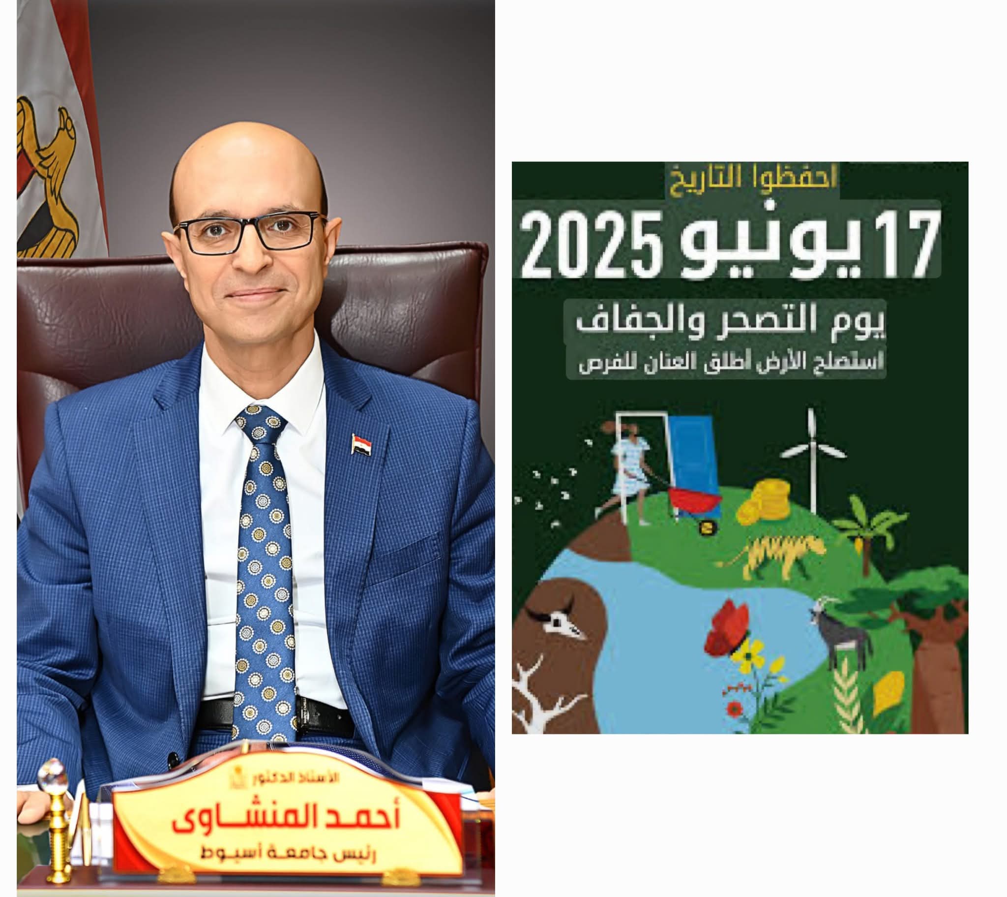 Dr. Ahmed El-Minshawy, president of Assiut University, stressed that the World Day to combat desertification and drought, which falls on the seventeenth of June every year, represents a very important awareness station, alerting the world to the danger of environmental degradation, and reminds of our duty to protect the planet and ensure the sustainability of its resources. He explained that the allocation of this day by the United Nations reflects the scale of challenges associated with desertification and drought, which directly affect societal and economic stability, especially in developing countries and the most affected by climate change.