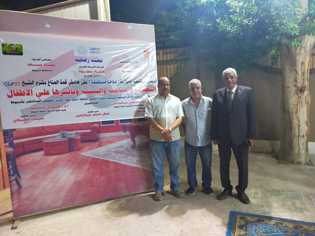 في أمسية ثقافية بقصر ثقافة أحمد بهاء الدين للطفل في مبادرة توعوية حول التغيرات المناخية والبيئية وتأثيرها على الطفل بمشاركة العالم الجليل أستاذنا الحبيب معالي الأستاذ الدكتور عادل ونان عميد كلية الزراعة بأسيوط، وحضور كريم لمعالي الأستاذ ضياء مكاوي وكيل وزارة الثقافة لأقليم وسط ، والعميد عبد الجابر سكرتير عام مساعد محافظة أسيوط، وأخي الحبيب الغالي الخلوق الكاتب الكبير  معالي الأستاذ الدكتور أحمد مصطفى،  والشاعر الكبير نعيم الاسيوطي ، والأخت الفضلى الإعلامية القديرة الأستاذة نبيلة، والمبدعة الدكتورة هدى محمد صلاح منسق المبادرة، والدكتور جمال عبد الناصر مدير قصر ثقافة أحمد بهاء الدين للطفل، وأولياء الأمور والأطفال المبدعين