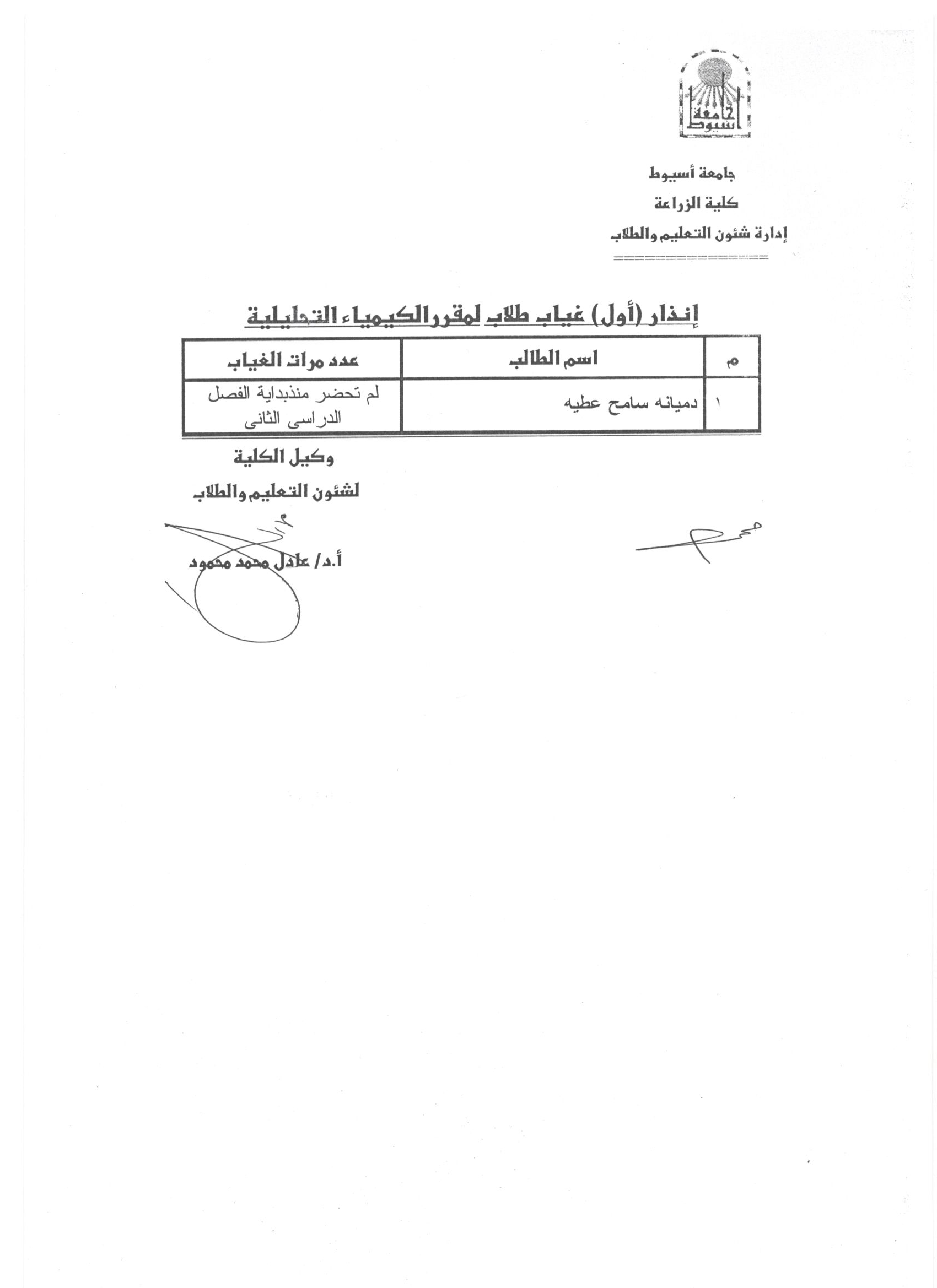 تهنئة السيد العميد للدكتورة / نسرين محمد فهمي ابوغدير