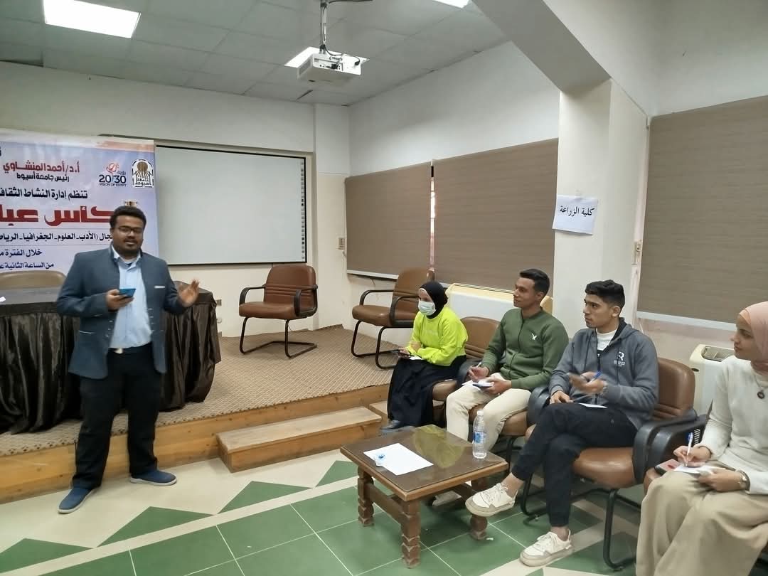 تنظم إدارة النشاط الثقافى مسابقة كأس عباقرة الكليات لجميع الكليات فى مجالات الادب العلوم - الجغرافيا - التاريخ الفنون - المعلومات العامة - القدرات الذهنية