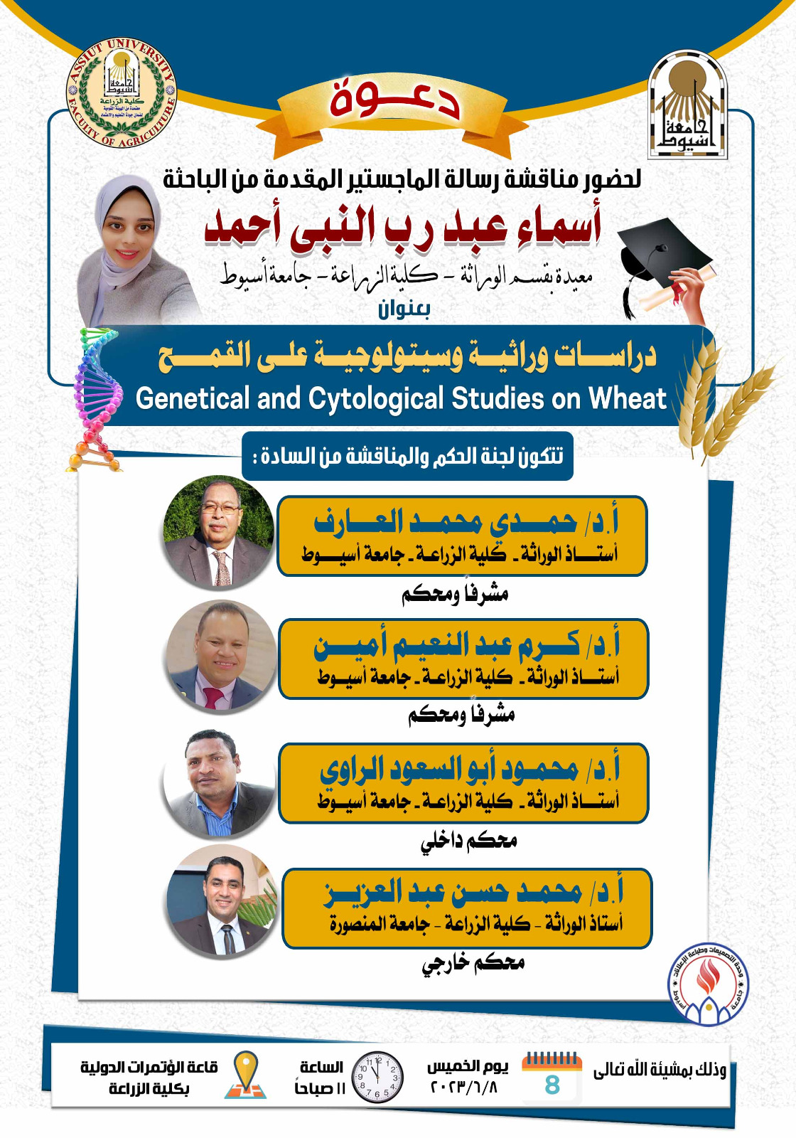 دعوة لحضور مناقشة رسالة الماجستير المقدمة من الباحثة اسماء عبد رب النبى أحمد 1 يونيو 2023 دعوة لحضور مناقشة رسالة الماجستير المقدمة من الباحثة اسماء عبد رب النبى أحمد