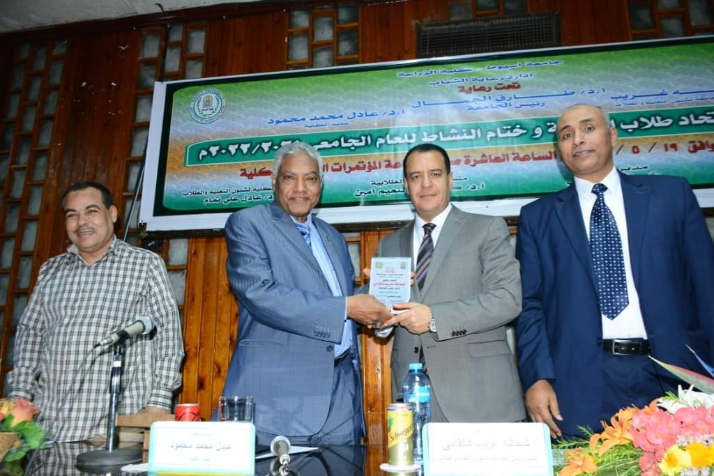كما أشار الدكتور عادل محمود عميد الكلية إلى ما تمتلكه جامعة أسيوط و كلية الزراعة  من طلاب متميزين و مبدعين يعملون بروح الفريق الواحد  قادرين على الإبداع و الابتكار المستمر  في مختلف الأنشطة الطلابية التي يشاركون فيها و تمثليهم المشرف لجامعة أسيوط على مستوى الجامعات المصرية في ظل ما توليه إدارة الجامعة لهم من دعم و رعاية و تشجعيهم على ممارسة كافة الأنشطة الطلابية، مشيراَ إلى أن فعاليات الحفل شهدت تقديم  عدد من الفقرات الموسيقية و العزف الموسيقى و الأنشطة الطلابية المتنوعة لطلاب الكلية ، كما شهدت ختام  فعاليات الحفل إهداء عميد كلية الزراعة درع كلية الزراعة إلى الدكتور شحاتة غريب  تقديراَ لدعمه المستمر و تذليل كافة الصعوبات و العقبات التي تواجه طلاب الجامعة أثناء مشاركتهم و ممارستهم للأنشطة الطلابية.