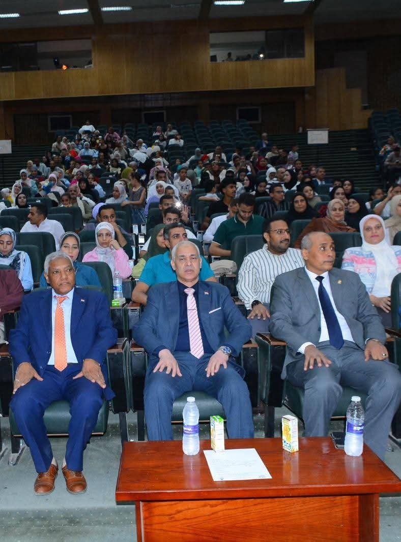 وخلال كلمته، أعرب الدكتور أحمد عبد المولى عن اعتزازه بدور كلية الزراعة في إعداد خريج مؤهل وقادر على المنافسة في سوق العمل الزراعي والإنتاج الحيواني، مشيدًا بجهود الكلية في تطوير برامجها الأكاديمية وتزويد الطلاب بالمهارات الحديثة، خاصةً في مجالات الذكاء الاصطناعي والرقمنة، بما يواكب توجهات الدولة ويسهم في دعم التنمية الزراعية وتحقيق الأمن الغذائي.