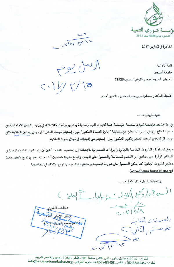 جائزةالاستاذ جورج استينو للبحث العلمي في مجال بساتين الفاكهة 2 أبريل 2017 جائزةالاستاذ جورج استينو للبحث العلمي في مجال بساتين الفاكهة