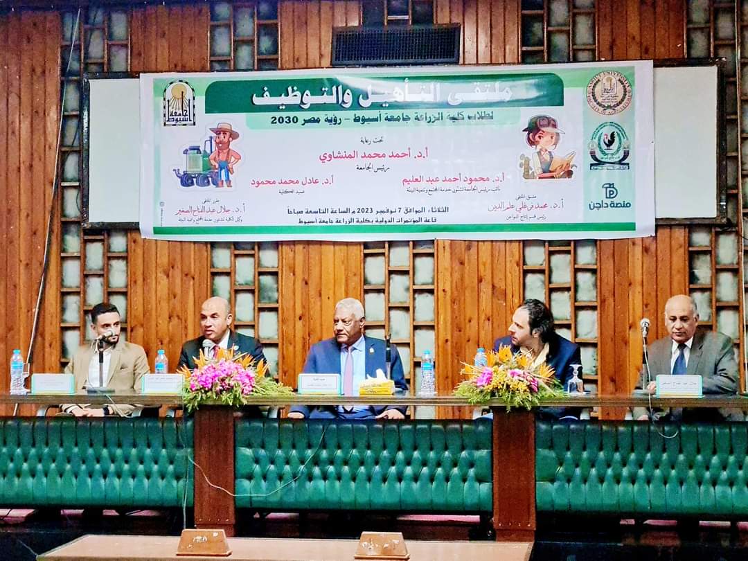 فى اطار حرص كلية الزراعة لتأهيل الطلاب لسوق العمل والاطلاع على كل ماهو جديد فى قطاع الزرعة عقد بالامس 7 نوفمبر 2023 وتحت رعاية السيد الاستاذ الدكتور احمد المنشاوي رئيس جامعه اسيوط والسيد الاستاذ الدكتور محمود عبدالعليم نائب رئيس الجامعة لشئون خدمه المجتمع وتنمية البيئة والسيد الأستاذ الدكتور عادل محمد محمود عميد كلية الزراعة جامعة اسيوط تم عقد ملتقي التأهيل والتوظيف لطلاب كليه الزراعه جامعه اسيوط والذي نظمه قطاع شئون البيئة بالكلية و قسم انتاج الدواجن بالتعاون مع منصة داجن ومشاركة مكتب اسيوط لسلامة وجودة الغذاء والمركز الجامعى للتطوير المهنى بجامعة اسيوط وذلك بحضور العديد من اعضاء هيئة التدريس بالكلية والطلاب