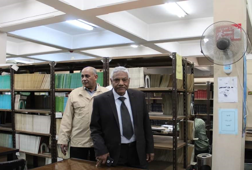 بالمرور علي مكتبة الدراسات العليا بالمبني الاداري ذلك لمتابعة سير العمل بالمكتبة .