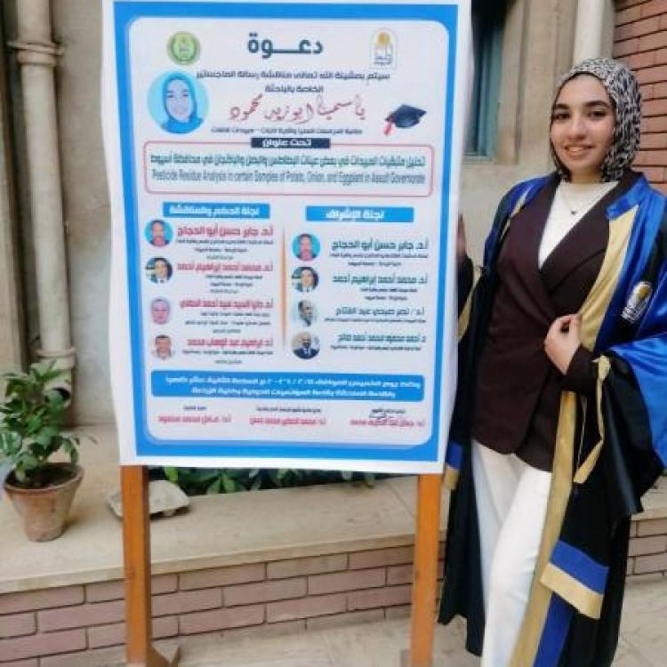 تمت مناقشة رسالة ماجستير بقسم وقاية النبات كلية الزراعة – جامعة أسيوط والمقدمة من الباحثة ياسمينا أبوزيد محمود، وذلك في إطار دعم الكلية للبحث العلمي وتشجيع الباحثين في الدراسات العليا.