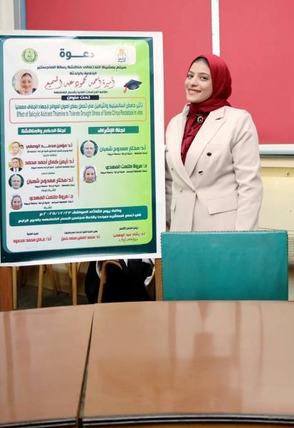 تمت مناقشة رسالة الماجستير المقدَّمة من الباحثة أميرة أحمد محمود عبد السميع، الباحثة بقسم الفاكهة بكلية الزراعة – جامعة أسيوط، وذلك في حضور نخبة من السادة أعضاء هيئة التدريس والباحثين.