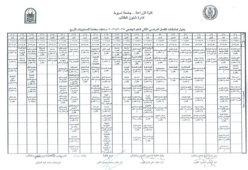 جدول امتحانات الفصل الدراسي الثاني للعام الجامعي 2026/2025ساعات معتمدة للمستويات الاربع 16 أبريل 2026