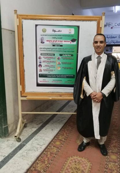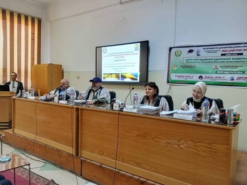 مناقشة رسالة الماجستير المقدمة من الباحث محمد عبده فراج بدوي بقسم الاقتصاد الزراعي.