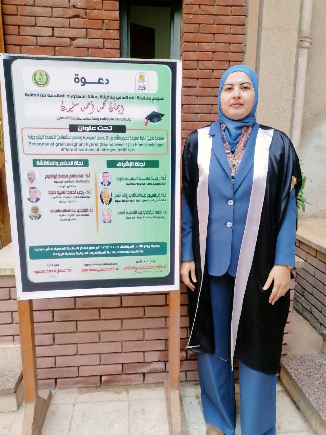 تمت مناقشة رسالة الدكتوراه المقدمة من الباحثة ايمان محمد احمد سليمان، طالبة الدراسات العليا بقسم المحاصيل بكلية الزراعة جامعة أسيوط.