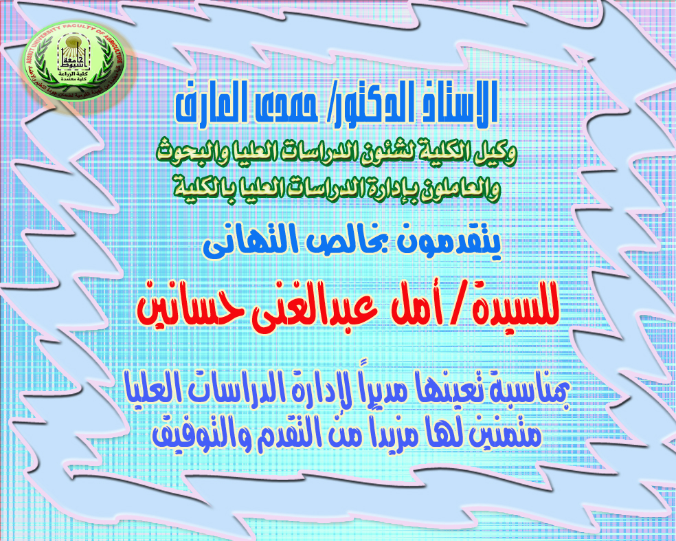 تهنئة للسيدة مدير ادارة الدراسات العليا