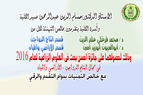 لحصولهما على جائزة احسن بحث فى العلوم الزراعية