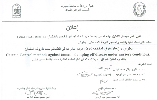 على أن يقوم الطالب بتسليم الأوراق لإدارة الدراسات العليا.