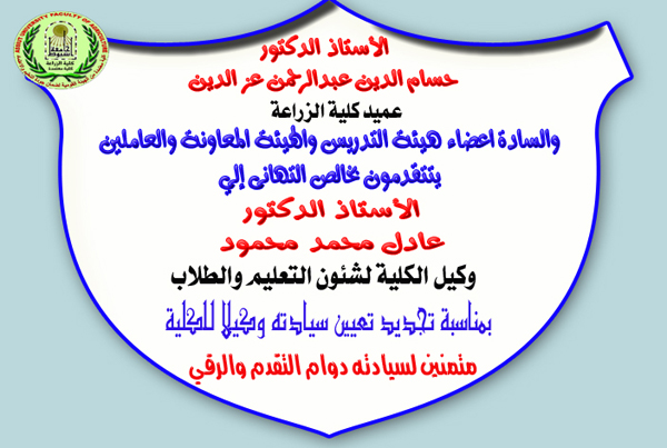 تهنئة من أ.د/حسام الدين عبدالرحمن عميد الكلية