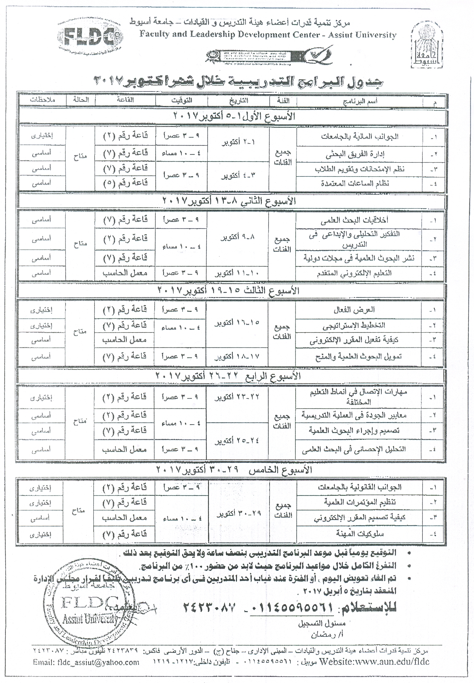 جدول دورات تنمية قدرات اعضاء هيئة التدريس لشهر اكتوبر2017