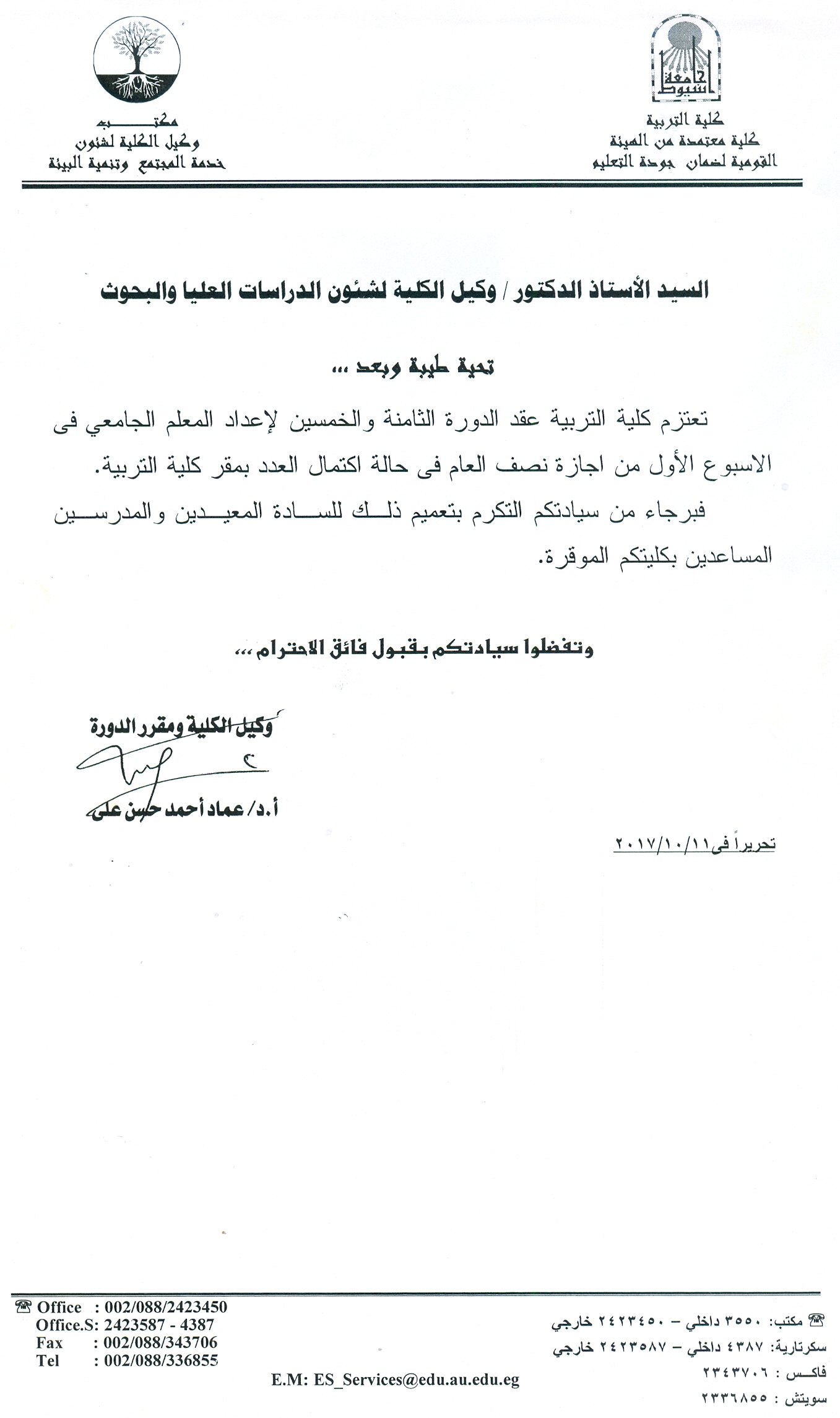يتقدم الاستاذ الدكتور/حسام الدين عبدالرحمن عزالدين عميد الكلية بخالص التهانى القلبية لجموع الشعب المصري وعلى رأسها الرئيس عبدالفتاح السيسي بمناسبة فوز المنتخب المصري والصعود الى نهائيات كأس العالم "روسيا2018" مع خالص التمنيات بأن تكون بداية لمزيد من الانتصارات وتحقيق الآمال المستهدفة والمخطط لها فى كافة المجالات متمنين لمصرنا الحبيبة كل ازدهار وتقدم
