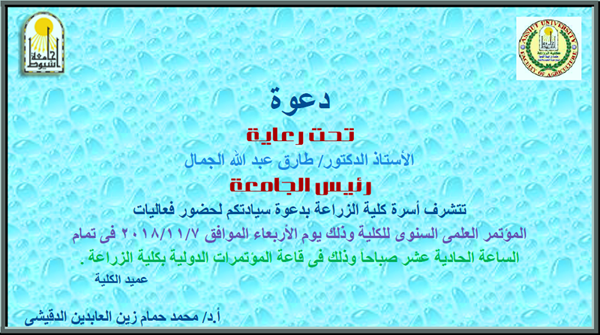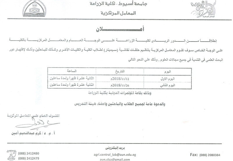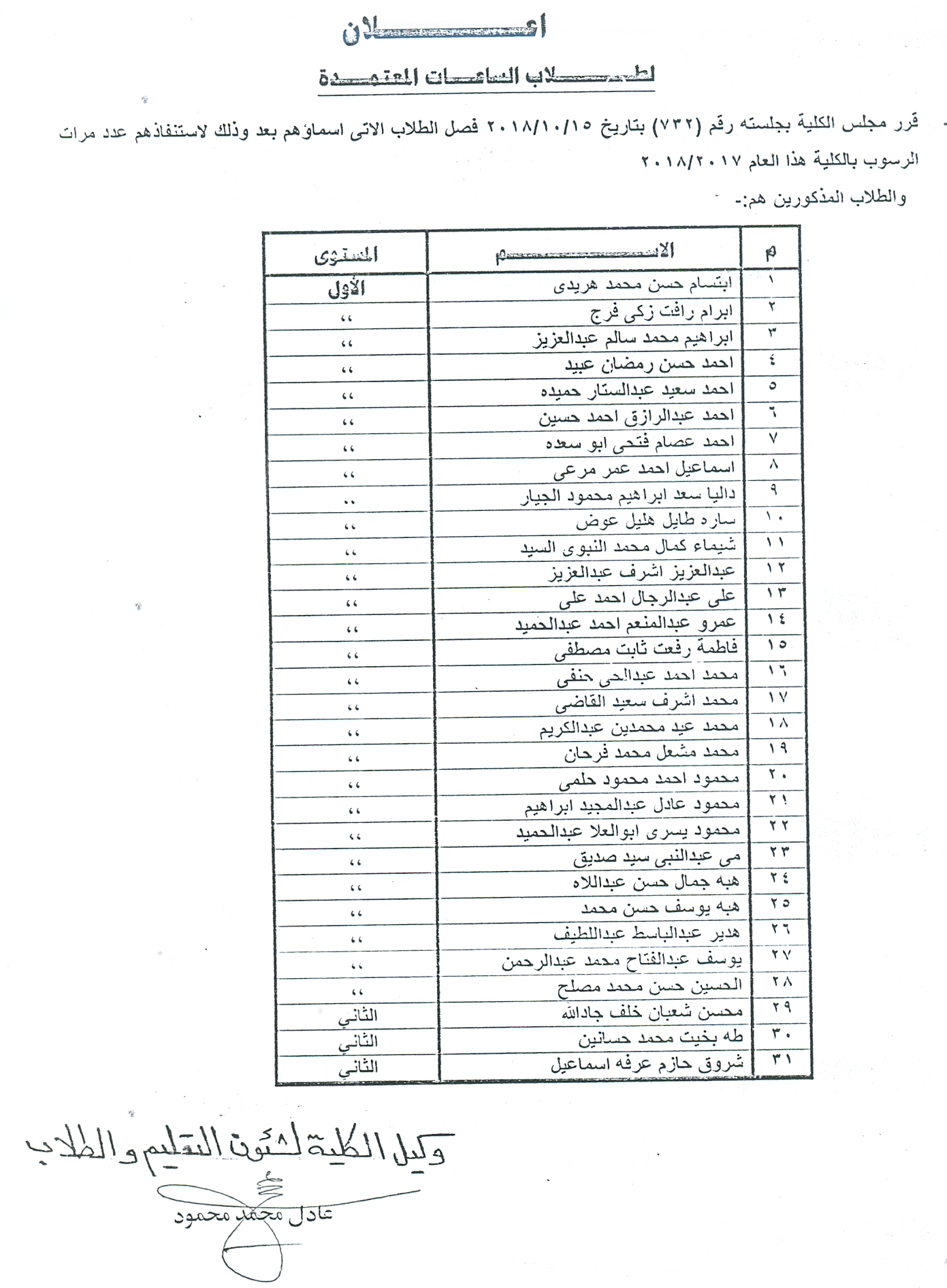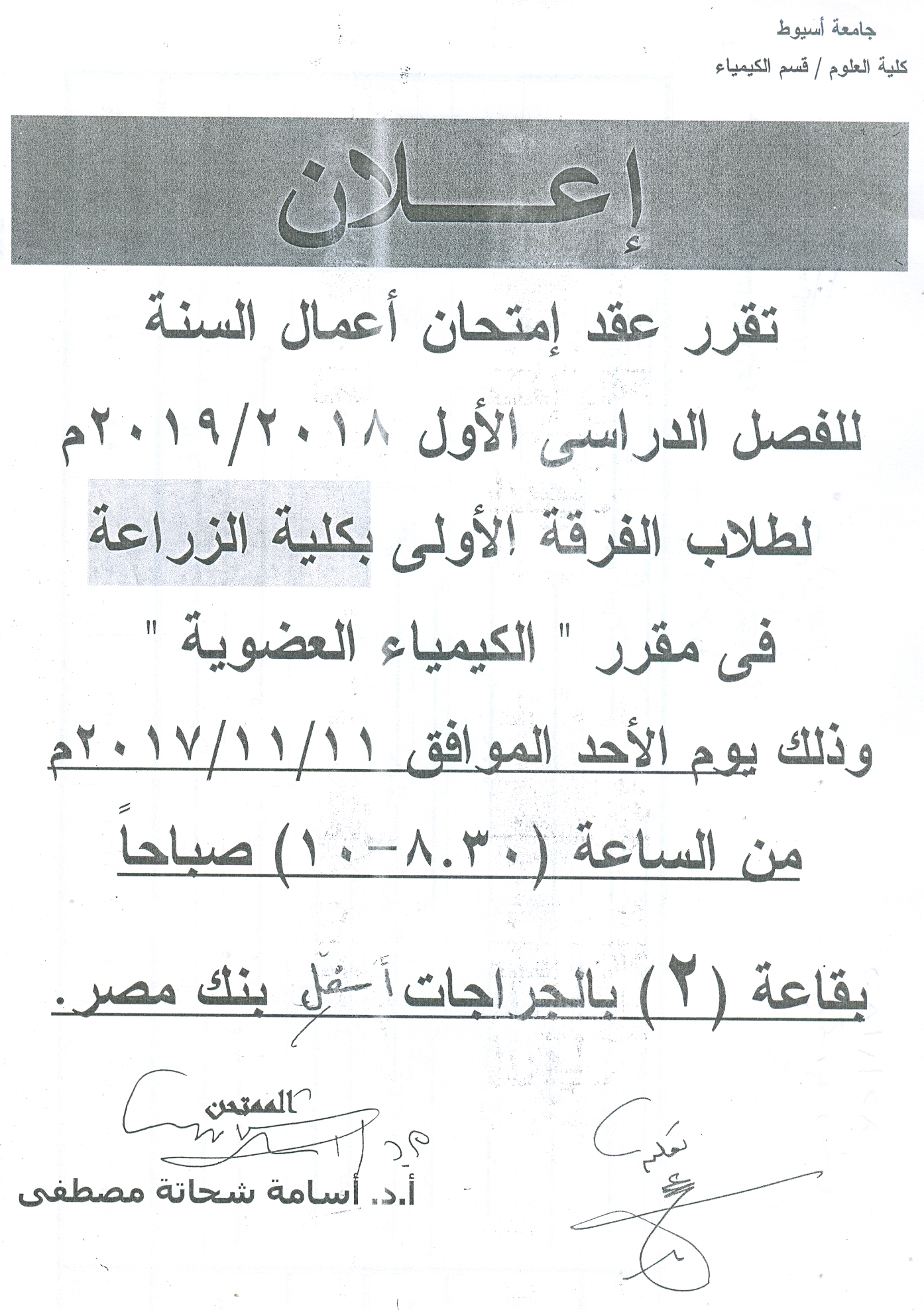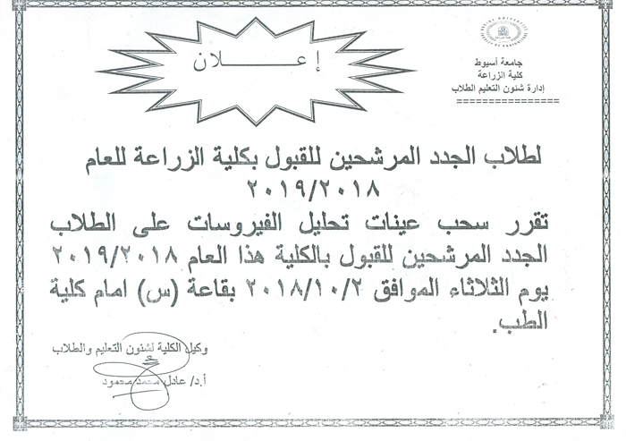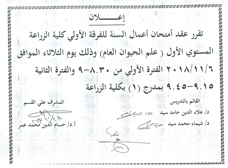 موعد انعقاد مجلس قسم الألبان يوم الاثنين الموافق 5/11/2018 في تمام الساعة العاشرة صباحا بقاعة الاجتماعات بالقسم بالدور الثاني