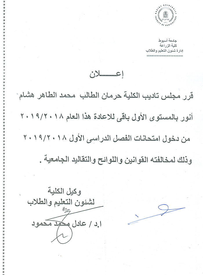 وعلى جميع الطلاب مراجعة ادارة الدراسات العليا ولوحة الاعلانات للاطلاع على جداول الامتحانات