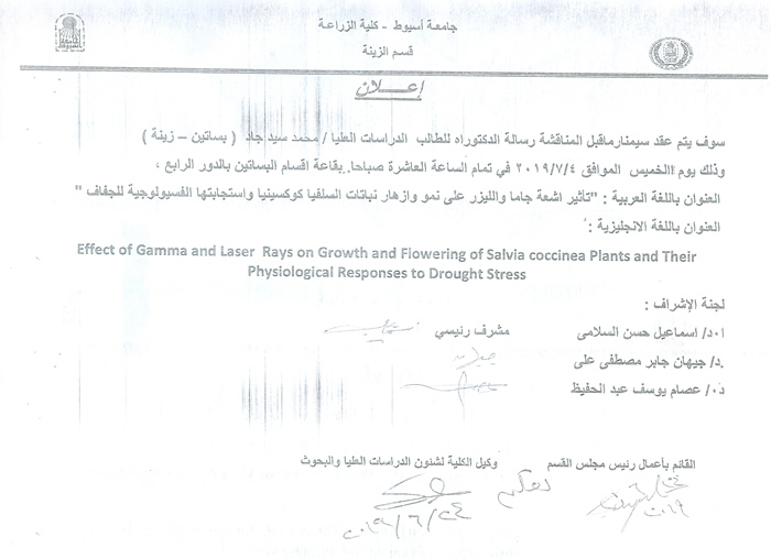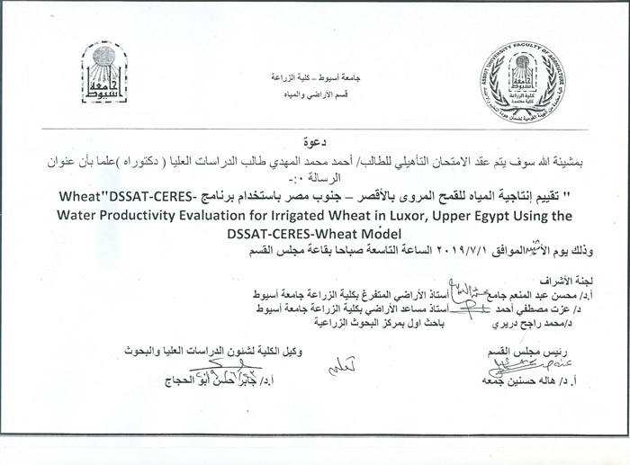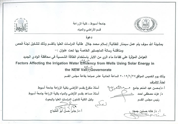 تتقدم اسرة كلية الزراعة - جامعة اسيوط بخالص التهانى الى السيد/ريمون رأفت لويس طالب الدراسات العليا بالكلية ماجستير -اجتماع ريفي لحصوله على براءة الاختراع رقم 28970 بتاريخ 9/10/2018 والخاصة بـاختراع