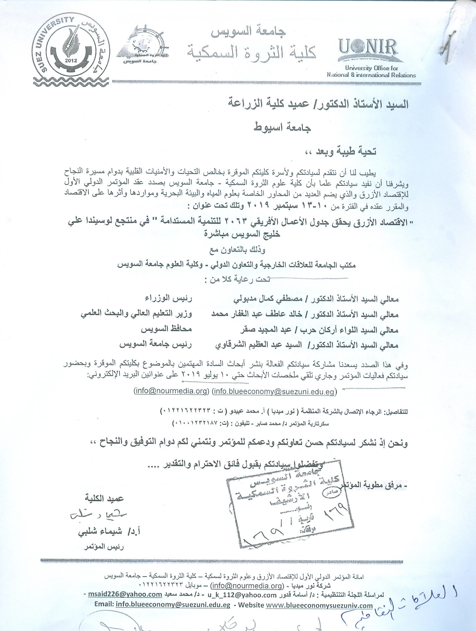 • عقد اجتماع لجنة خدمة المجتمع وتنمية البيئة بكلية الزراعة يوم الأحد الموافق 7-7-2019م.