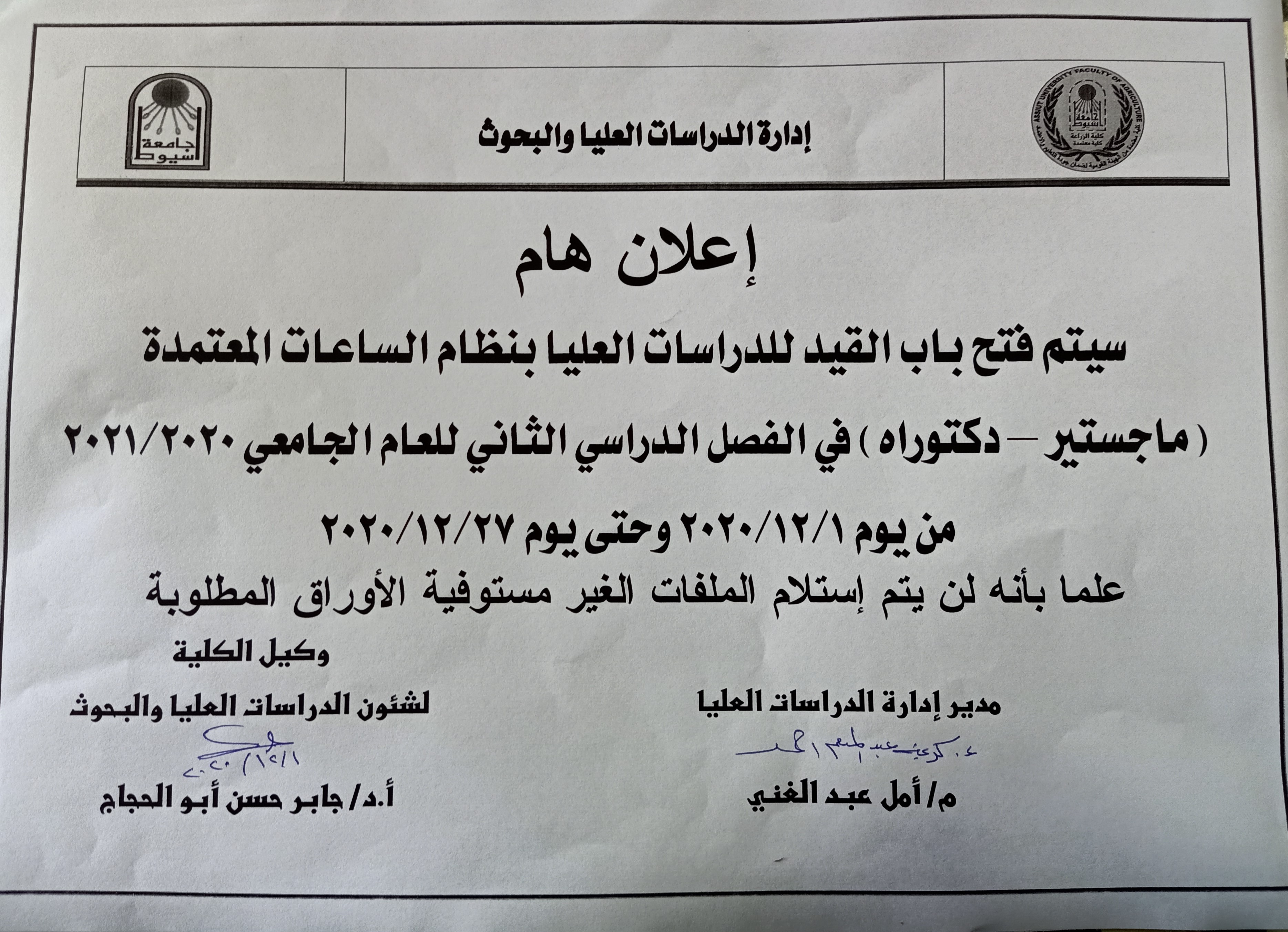 اعلان هام فتح باب القيد للدراسات العليا بنظام الساعات المعتمدة