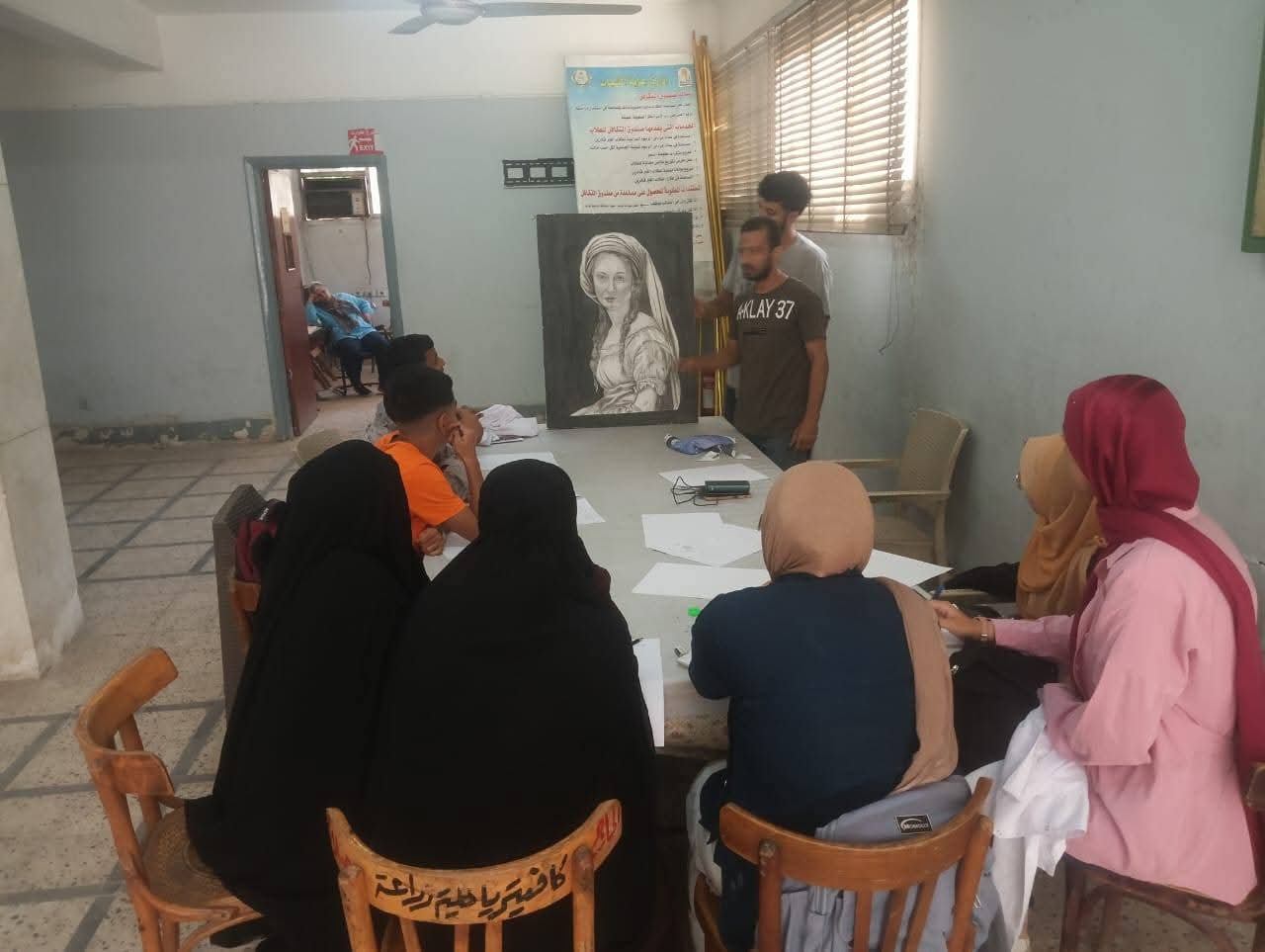 إقامة الورشة الفنية الأولى لتعليم أساسيات رسم البورتريه (رصاص – فحم)،
