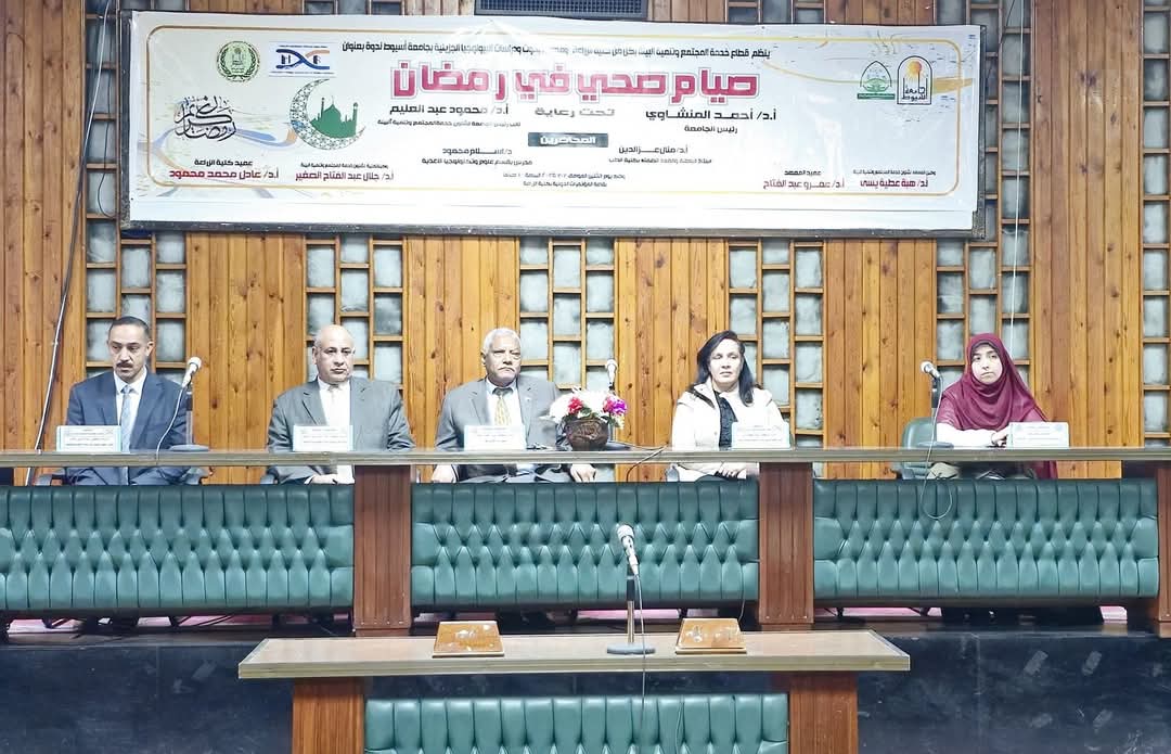 تحت رعاية الاستاذ الدكتور أحمد المنشاوي رئيس الجامعة والاستاذ الدكتور محمود عبد العليم نائب رئيس الجامعة لشئون خدمة المجتمع وتنمية البيئة وبإشراف السيد الاستاذ الدكتور عادل محمد محمود عميد كلية الزراعة والاستاذ الدكتور عمرو عبد الفتاح عميد معهد بحوث ودراسات البيولوجيا الجزيئية وبمتابعة من السيد الاستاذ الدكتور جلال عبد الفتاح وكيل كلية الزراعة لشئون خدمة المجتمع وتنمية البيئة والاستاذ الدكتور هبة عطية وكيل معهد بحوث ودراسات البيولوجيا الجزيئية لشئون خدمة المجتمع وتنمية البيئة تم اليوم الاثنين الموافق ٣ /٣/ ٢٠٢٥ عقد ندوة صيام صحي في رمضان والتي ينظمها قطاع خدمة المجتمع وتنمية البيئة بالجامعة بالتعاون مع كلية الزراعة ومعهد بحوث ودراسات البيولوجيا الجزيئية