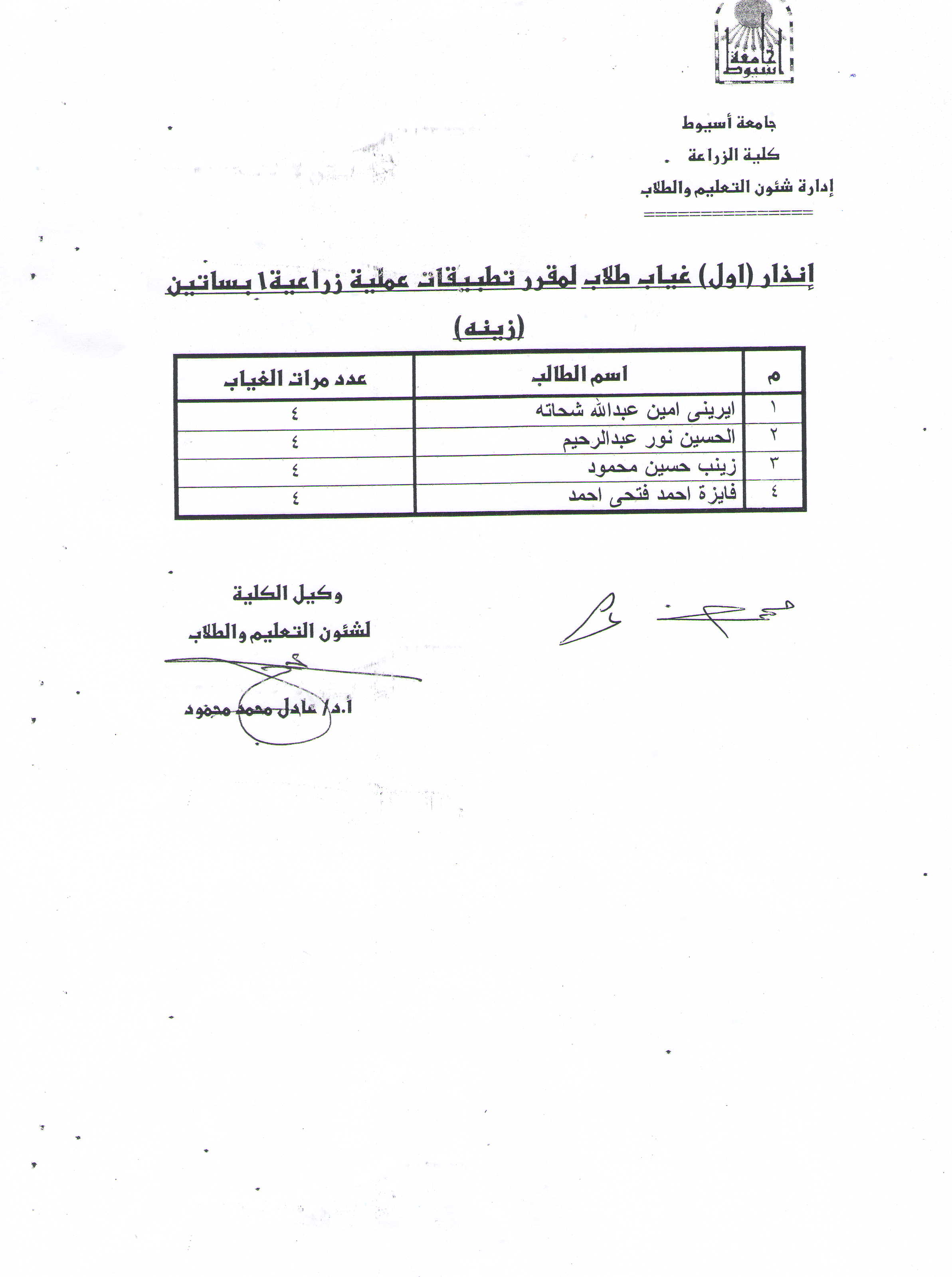 عميد كلية الزراعة