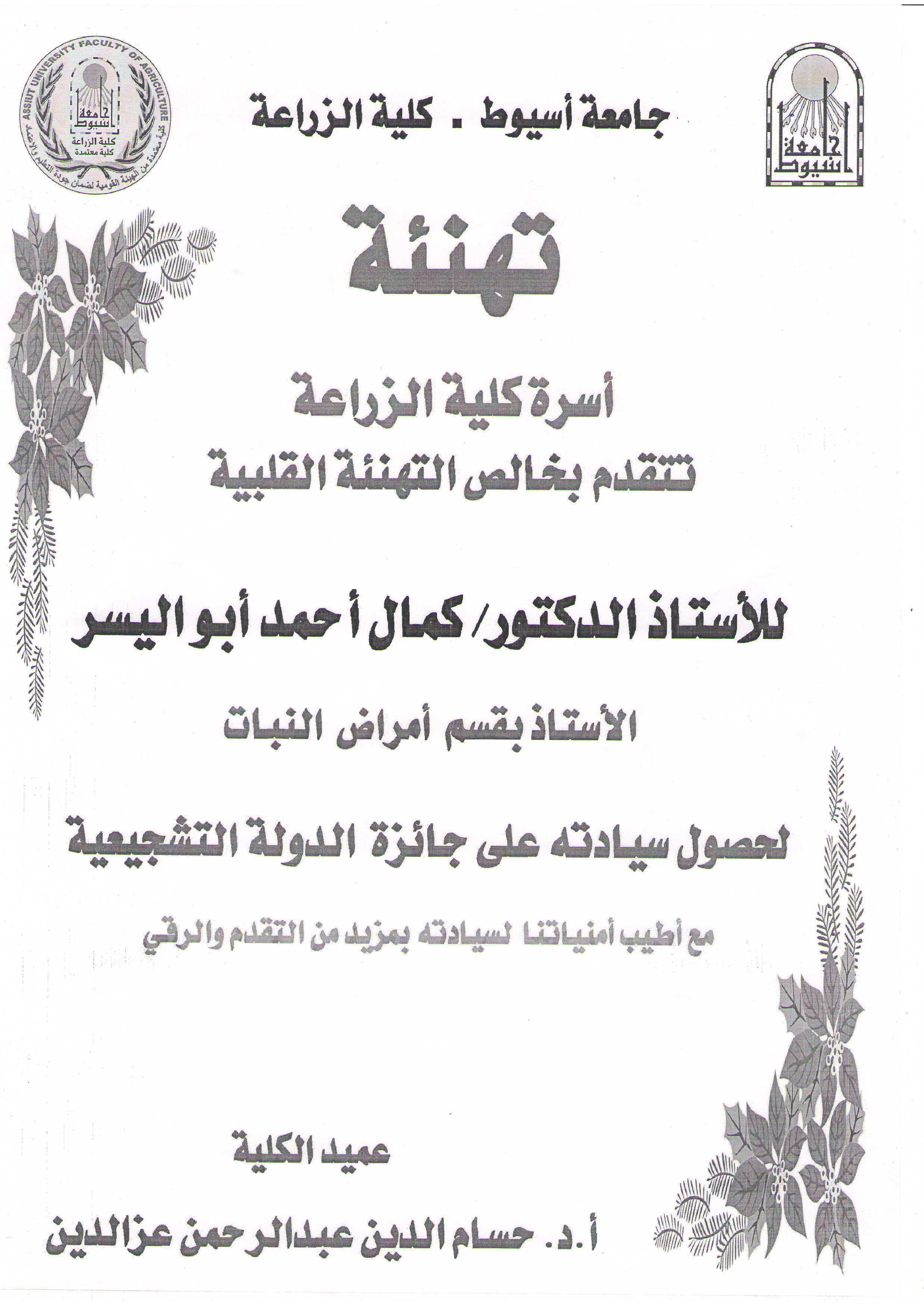 تهنئة السيد العميد للدكتورة / نسرين محمد فهمي ابوغدير