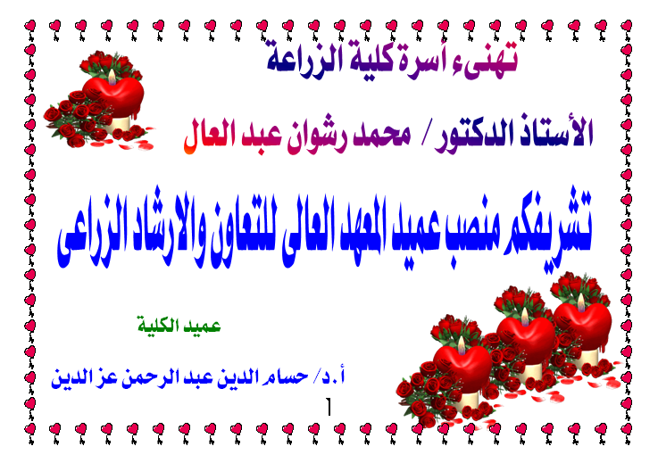 تهنئة من الاستاذ الدكتورعميد الكلية الى ا.د/ محمد رشوان عبد العال 15 نوفمبر 2015 تهنئة من الاستاذ الدكتورعميد الكلية الى ا.د/ محمد رشوان عبد العال