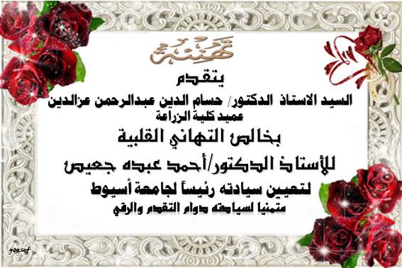 علي تعيين سيادته رئيساً لجامعة أسيوط