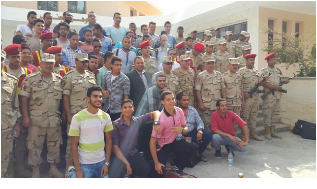 إستقبل اللواء أركان حرب يحيى طه الحميلى قائد المنطقة الجنوبية العسكرية بأسيوط وفداً من طلاب جامعة أسيوط وذلك بحضور الدكتور كرم عبدالنعيم منسق عام الأنشطة الطلابية والمقدم خالد سمير مدير إدارة التربية العسكرية بالجامعة، والتى تأتى فى إطار إحتفالات الدولة بذكرى إنتصارات أكتوبر المجيدة. حيث أكد الطلاب خلال الزيارة على عمق العلاقة بين الشعب المصرى وقواته المسلحة على مر العصور وتقديرهم لما ضحى به شهداء الجيش من دمائهم الذكيه وأرواحهم العطرة فى سبيل الدفاع عن الوطن وحماية شعبه، وهو ما سطره التاريخ بأحرف من نور فى إنتصاره العظيم فى حرب السادس من اكتوبر والذى لا تزال تدرس فى مختلف المؤسسات السياسية والعسكرية على مستوى دول العالم بالاضافة إلى جهود القوات المسلحة وإسهاماتها الهامة ليس فى المجال العسكرى فقط ولكن فى المجالات التنموية والخدمية . وقد أكد قائد المنطفة الجنوبية العسكرية على عظمة الشعب المصرى وعراقة تاريخه ومايتميز به من وطنية وإخلاص لوطنه أبهرت العالم على مر العصور القديمة والتى انعكست بوضوح خلال ثورتى 25 يناير و 30 يونيو والذى نجح خلالهما فى التمسك بارادته السياسية الحرة والحفاظ على هويته التاريخية و وحدته الوطنية، مشيراَ إلى أن القوات المسلحة وتقدم أبنائها فداءَ فى سبيل الدفاع عن أراضى الوطن وحماية أراضيه متمنياَ الرفعة والتقدم والرخاء لمصر والمصريين . ومن جانبه اوضح كرم عبدالنعيم ان تم تنظيم الزيارة تحت رعاية الدكتور أحمد عبده جعيص القائم بأعمال رئيس الجامعة والتى تضم 50 طالب وطالبة من مختلف الكليات، وقد تفقد الطلاب خلالها المكتبة العسكرية و مركز الأشعاع الحضاري والمتحف التاريخي، كما تم عرض فيلم تسجيلي عن دور القوات المسلحة المصرية في حماية الوطن والدور الخدمي التى تساهم به فى عدد من المجالات كما تم عقد لقاء مع قادة القوات المسلحة بالمنطقة الجنوبية العسكرية .