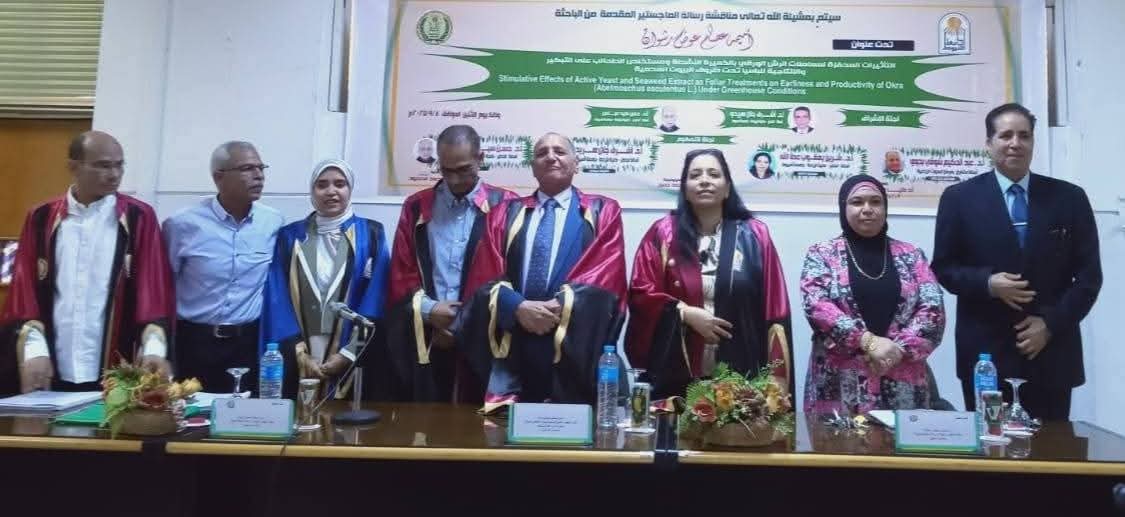 تم مناقشة رسالة الماجستير المقدمة من الباحثة / اميمة عصام عوض رشوان طالبة الدراسات العليا بقسم الخضر، كلية الزراعة ، جامعة أسيوط)