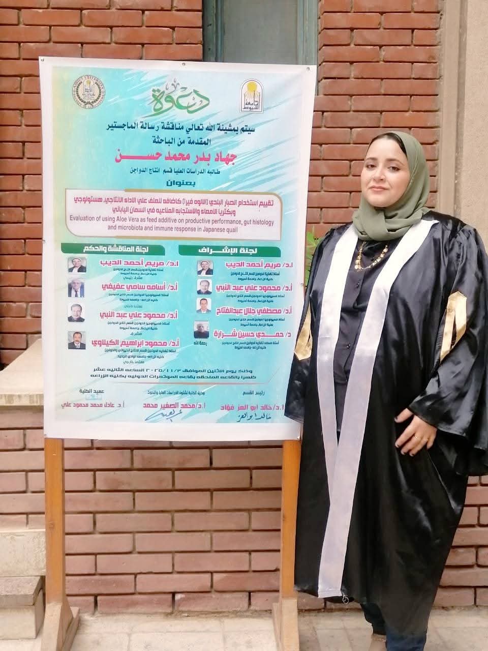 تمت مناقشة رسالة الماجستير المقدمة من الباحثة جهاد بدر محمد حسن، طالبة الدراسات العليا بقسم إنتاج الدواجن بكلية الزراعة جامعة اسيوط
