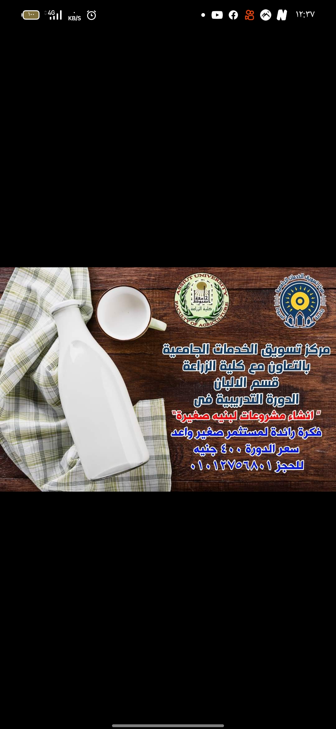 يعلن مركز تسويق الخدمات الجامعية بجامعة اسيوط بالتعاون مع كلية الزراعة قسم الالبان
