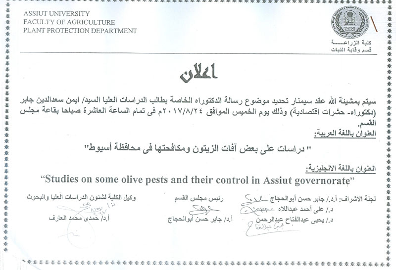 Discussing the PhD thesis of the student / Ayman Saad Eddin Jaber 21 August 2017 Discussing the PhD thesis of the student / Ayman Saad Eddin Jaber
