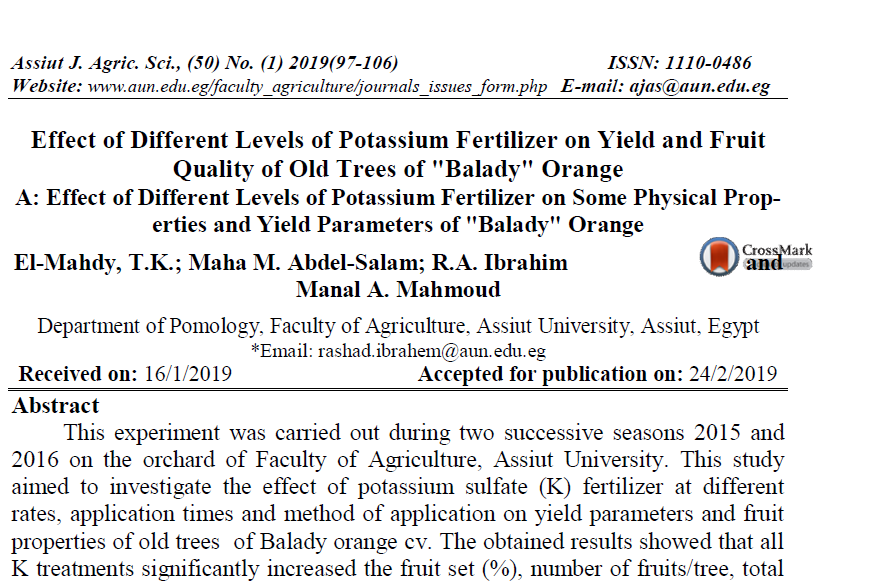 aimed to investigate the effect of potassium sulfate (K) fertilizer at different