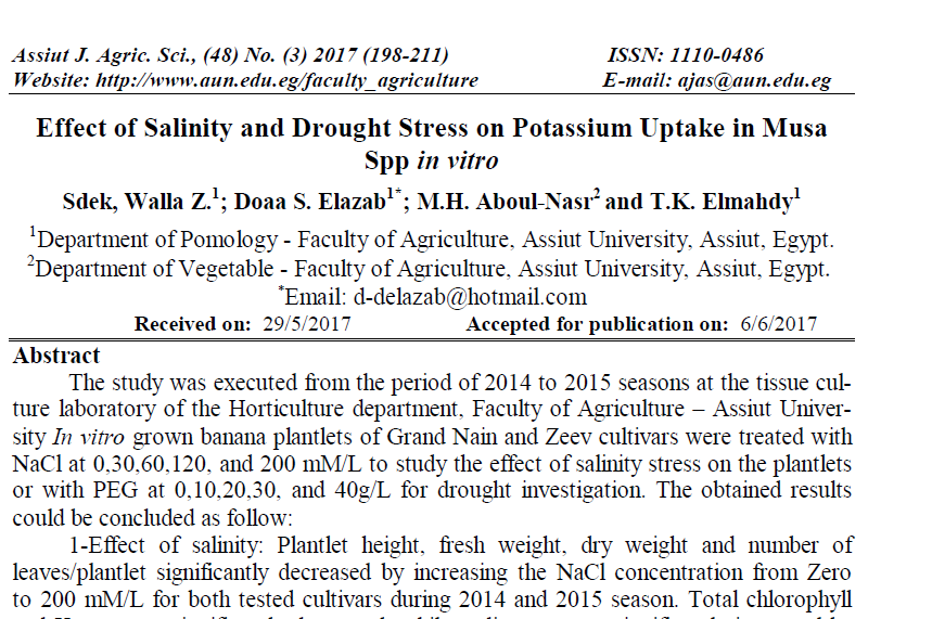 laboratory of the Horticulture department, Faculty of Agriculture – Assiut University