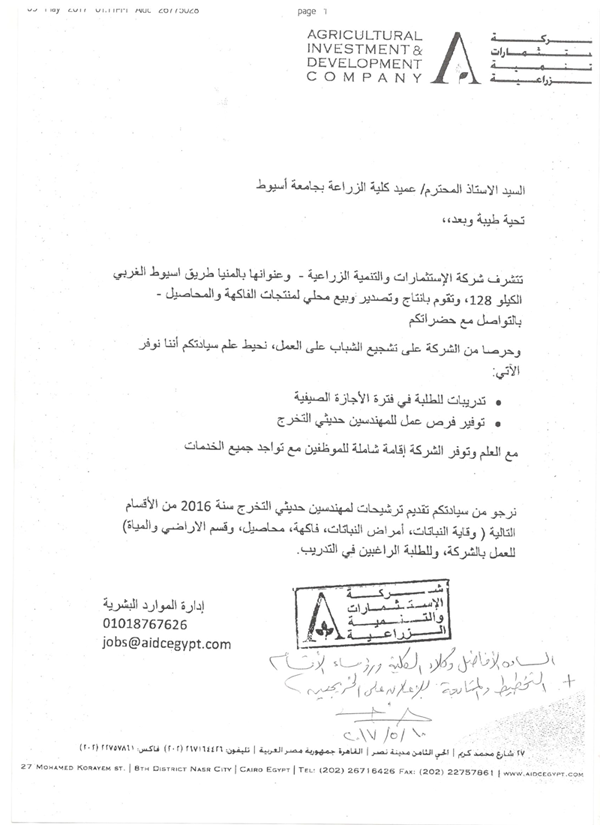 Announcement of the Investment Company and Agricultural Development 11 May 2017 Announcement of the Investment Company and Agricultural Development