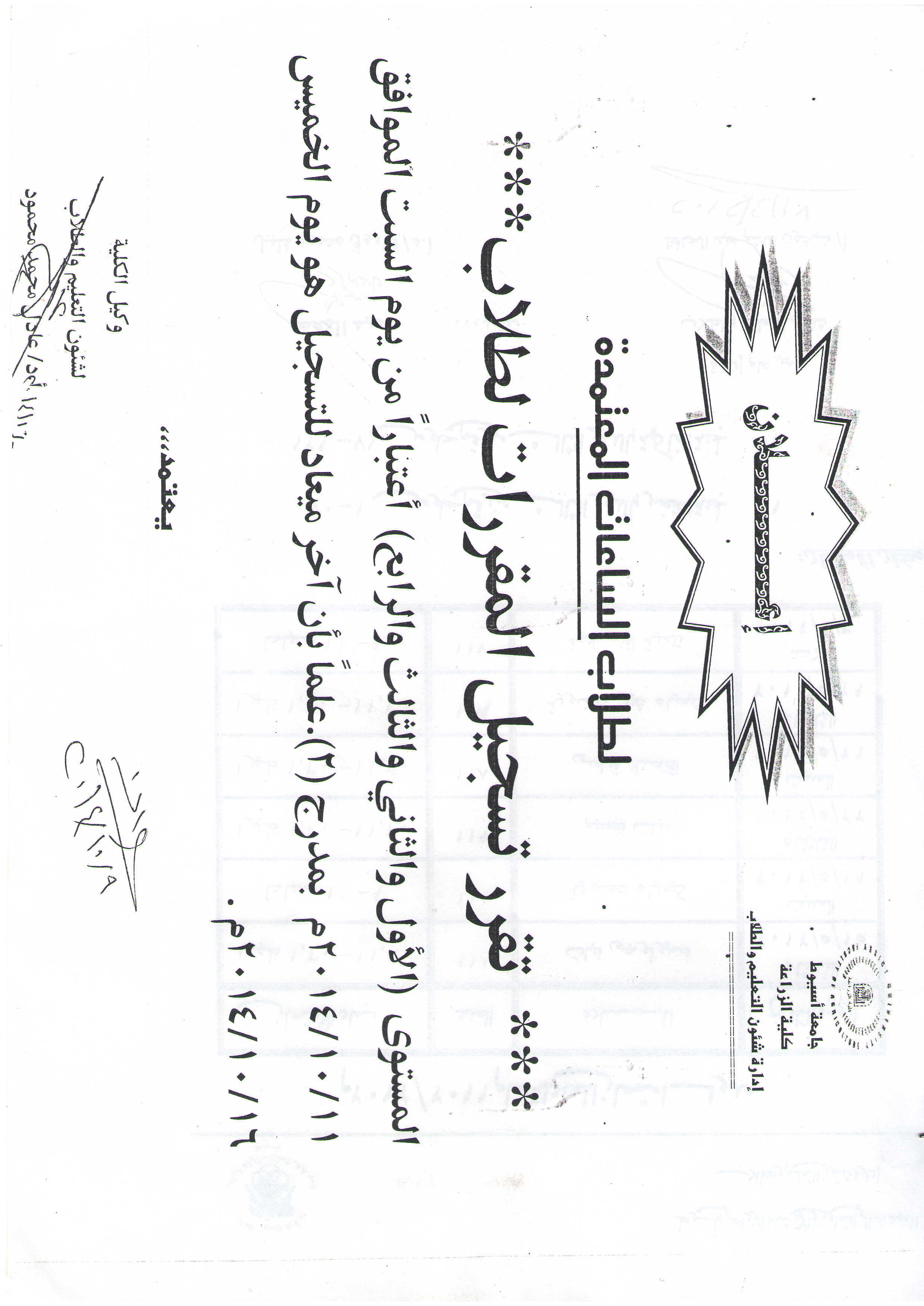 اعلان لطلاب الساعات المعتمدة